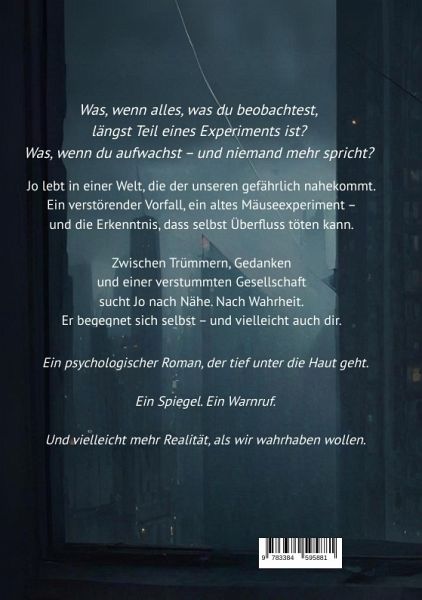 "Der Spiegel im Käfig" erzählt die Geschichte von Jo - einem Mann, der sich inmitten einer scheinbar funktionierenden Welt zunehmend verloren fühlt. Er lebt in einer Realität voller Smartphones, Selfies, stiller Busfahrten und leerer Gespräche. Alles ist da - und doch fehlt etwas Entscheidendes: echte Nähe.Als Jo zufällig von einem fast vergessenen psychologischen Experiment hört - dem "Universum 25", in dem Mäuse trotz perfekter Lebensbedingungen an Apathie und Isolation zugrunde gingen -, beginnt er, Parallelen zur menschlichen Gesellschaft zu erkennen. Was als vager Verdacht beginnt, entwickelt sich zu einer verstörenden Entdeckungsreise durch eine Welt, die ihm plötzlich fremd erscheint. Er beginnt zu beobachten, zu dokumentieren - und zunehmend zu zweifeln: an der Welt, an den Menschen, an sich selbst.Zwischen digitalen Oberflächen, verstummten Kontakten und der verzweifelten Suche nach Verbindung wird Jo zum Spiegel unserer Zeit. Seine Gedanken, Ängste und Beobachtungen sind nicht nur seine eigenen - sie gehören vielleicht auch uns. Denn was, wenn wir längst in einem sozialen Käfig leben, den wir selbst gebaut haben?Und was, wenn niemand merkt, dass wir darin leise untergehen?"Der Spiegel im Käfig" ist ein psychologisch tiefgehender Roman über Isolation im Überfluss, über das Verstummen in der Vernetzung - und über einen Mann, der sich aufmacht, die Menschlichkeit nicht kampflos zu verlieren.