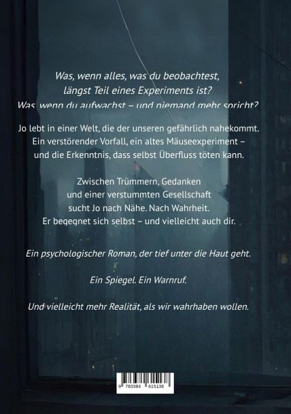 "Der Spiegel im Käfig" erzählt die Geschichte von Jo - einem Mann, der sich inmitten einer scheinbar funktionierenden Welt zunehmend verloren fühlt. Er lebt in einer Realität voller Smartphones, Selfies, stiller Busfahrten und leerer Gespräche. Alles ist da - und doch fehlt etwas Entscheidendes: echte Nähe.Als Jo zufällig von einem fast vergessenen psychologischen Experiment hört - dem "Universum 25", in dem Mäuse trotz perfekter Lebensbedingungen an Apathie und Isolation zugrunde gingen -, beginnt er, Parallelen zur menschlichen Gesellschaft zu erkennen. Was als vager Verdacht beginnt, entwickelt sich zu einer verstörenden Entdeckungsreise durch eine Welt, die ihm plötzlich fremd erscheint. Er beginnt zu beobachten, zu dokumentieren - und zunehmend zu zweifeln: an der Welt, an den Menschen, an sich selbst.Zwischen digitalen Oberflächen, verstummten Kontakten und der verzweifelten Suche nach Verbindung wird Jo zum Spiegel unserer Zeit. Seine Gedanken, Ängste und Beobachtungen sind nicht nur seine eigenen - sie gehören vielleicht auch uns. Denn was, wenn wir längst in einem sozialen Käfig leben, den wir selbst gebaut haben?Und was, wenn niemand merkt, dass wir darin leise untergehen?"Der Spiegel im Käfig" ist ein psychologisch tiefgehender Roman über Isolation im Überfluss, über das Verstummen in der Vernetzung - und über einen Mann, der sich aufmacht, die Menschlichkeit nicht kampflos zu verlieren.