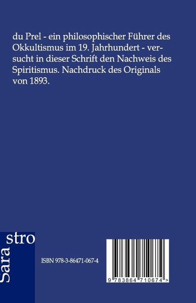 du Prel - ein philosophischer Führer des Okkultismus im 19. Jahrhundert - versucht in dieser Schrift den Nachweis des Spiritismus. Nachdruck des Originals von 1893.