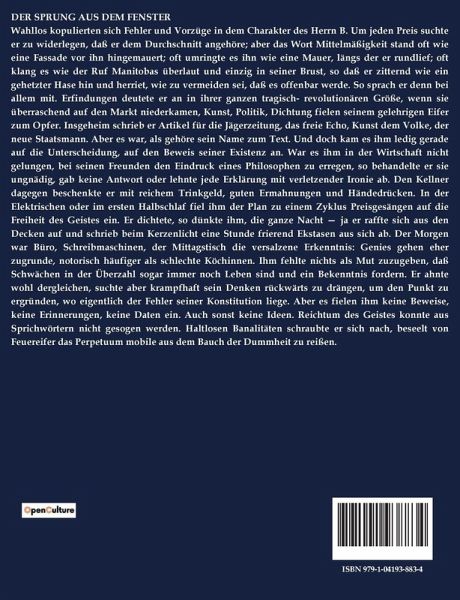 "Der Sprung aus dem Fenster" von Karl Otten ist eine Sammlung von Erzählungen, die tief in die menschliche Psyche eintauchen und die Konflikte zwischen individuellen Wünschen und gesellschaftlichen Erwartungen beleuchten. Die titelgebende Erzählung "Der Sprung aus dem Fenster" beschreibt die innere Zerrissenheit eines Mannes, der sich zwischen seinem Streben nach Einzigartigkeit und der Angst vor Mittelmäßigkeit gefangen fühlt. Er kämpft mit seiner Identität und der Unfähigkeit, sich in der Gesellschaft zu behaupten, was ihn schließlich zu einem symbolischen Sprung in die Freiheit treibt. In "Die Siebenschläfer" wird die Geschichte von sieben christlichen Jünglingen erzählt, die während der Verfolgung durch Kaiser Dezius in einer Höhle Zuflucht suchen und dort in einen jahrhundertelangen Schlaf fallen. Als sie erwachen, finden sie eine Welt vor, in der das Christentum zur dominierenden Religion geworden ist. Doch die Entfremdung von den ursprünglichen Idealen des Glaubens erfüllt sie mit Trauer und Enttäuschung. "Das Pferd" schildert die Begegnung eines Mannes mit einem alten, zum Schlachthof geführten Pferd. Diese Begegnung konfrontiert ihn mit der Vergänglichkeit und dem Elend des Lebens, was ihn in eine existenzielle Krise stürzt. Die Erzählung "Die Heimkehr" beschreibt die Rückkehr eines Mannes aus der Haft zu seiner Familie. Er wird mit der Krankheit seines Vaters und der eigenen Schuld konfrontiert, was ihn zwingt, sich mit seiner Vergangenheit auseinanderzusetzen. Otten nutzt in seinen Erzählungen eine eindringliche Sprache, um die inneren Kämpfe seiner Protagonisten darzustellen. Die Geschichten sind geprägt von einer tiefen Melancholie und einem kritischen Blick auf die gesellschaftlichen Strukturen, die das Individuum formen und oft einschränken.