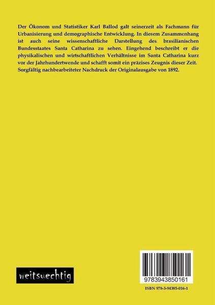 Der Ökonom und Statistiker Karl Ballod galt seinerzeit als Fachmann für Urbanisierung und demographische Entwicklung. In diesem Zusammenhang ist auch seine wissenschaftliche Darstellung des brasilianischen Bundesstaates Santa Catharina zu sehen. Eingehend beschreibt er die physikalischen und wirtschaftlichen Verhältnisse im Santa Catharina kurz vor der Jahrhundertwende und schafft somit ein präzises Zeugnis dieser Zeit.