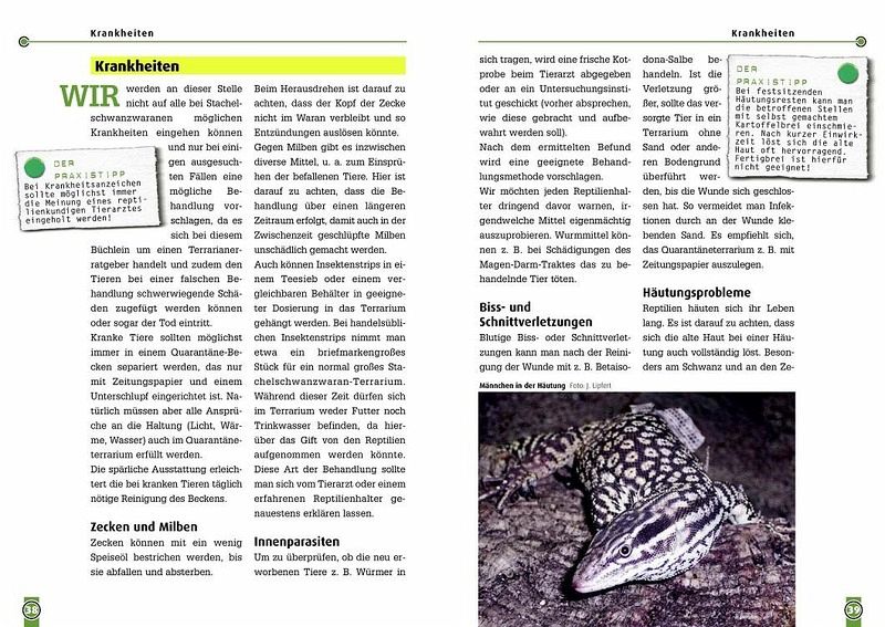 Andreas Dickhoff und Jürgen Lipfert beschäftigen sich seit vielen Jahren mit Stachelschwanzwaranen. In diesem Buch gehen sie auf alle Aspekte rund um die Haltung und artgerechte Pflege dieser spannenden Echsen ein und zeigen Ihnen, wie Sie Ihre Tiere zur Vermehrung bringen, die Eier ausbrüten und die Kleinen aufziehen können.- Systematik und Körperbau- Die faszinierende Biologie: Aus dem Leben der Stachelschwanzwarane- Alle Informationen zur artgerechten Haltung: Vom geeigneten Terrarium über Einrichtung und Technik bis hin zur Fütterung- Erfolgreich nachzüchten: Paarungsstimulation, Inkubation der Eier und Aufzucht der Jungtiere- Problemlösungen: Wie man die häufigsten Fehler bei der Pflege vermeidet, und wie man kranken Tieren helfen kann- Brillante FotosArt für Art stellen Ihnen die Bücher dieser Reihe die beliebtesten Terrarientiere vor. Jeder Band bietet Ihnen detaillierte, praxisnahe Pflegeanleitungen und Sie finden alle Informationen, die Sie brauchen, um Ihre Tiere erfolgreich zu vermehren. Alle wichtigen Fragen von der erforderlichen Beckengröße über die Terrarieneinrichtung, die technische Ausstattung, die artgerechte Ernährung bis zur Vorbeugung von Krankheiten werden mit zahlreichen Tricks und Kniffen beantwortet. Erfahrene, langjährige Züchter verraten, wie Sie die Tiere zur Fortpflanzung bewegen und die Jungtiere gesund aufziehen können.Das alles durchgängig farbig, großzügig bebildert und attraktiv gestaltet nur über Ihr Terrarientier - Art für Art.