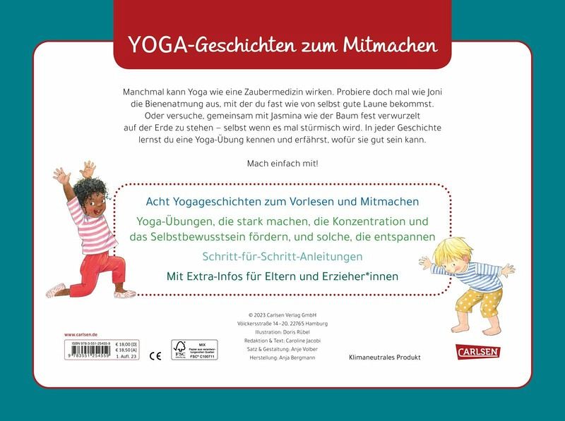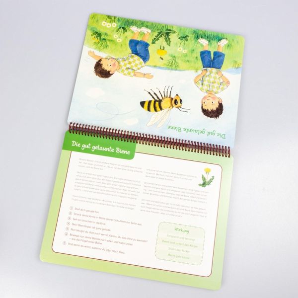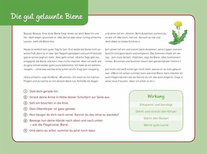 Da gibt es die Geschichte von der gutgelaunten Biene, die Joni zeigt, dass man nur durch Atmen gute Laune bekommen kann, oder die vom Baum, der Jasmina erklärt, wie sie auch bei Wind nicht ins Wanken gerät. Verständliche Übungsanleitungen und weiterführende Informationen für die Eltern und Erzieher_innen runden das Konzept ab.