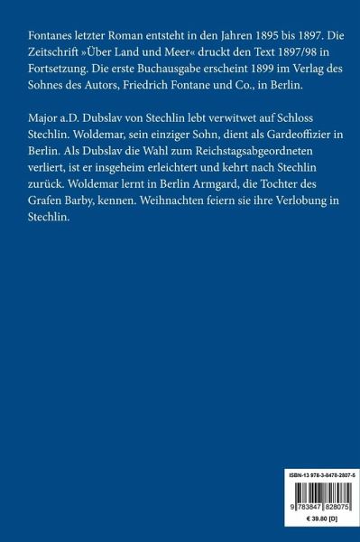 Theodor Fontane: Der Stechlin. Roman Lesefreundlicher Großdruck in 16-pt-Schrift Fontanes letzter Roman entsteht in den Jahren 1895 bis 1897. Die Zeitschrift »Über Land und Meer« druckt den Text 1897/98 in Fortsetzung. Die erste Buchausgabe erscheint 1899 im Verlag des Sohnes des Autors, Friedrich Fontane und Co., in Berlin. Major a.D. Dubslav von Stechlin lebt verwitwet auf Schloss Stechlin. Woldemar, sein einziger Sohn, dient als Gardeoffizier in Berlin. Als Dubslav die Wahl zum Reichstagsabgeordneten verliert, ist er insgeheim erleichtert und kehrt nach Stechlin zurück. Woldemar lernt in Berlin Armgard, die Tochter des Grafen Barby, kennen. Weihnachten feiern sie ihre Verlobung in Stechlin. Großformat, 210 x 297 mm Berliner Ausgabe, 2019 Durchgesehener Neusatz mit einer Biographie des Autors bearbeitet und eingerichtet von Theodor Borken Entstanden 1895/97. Erstdruck in: Über Land und Meer (Stuttgart), Bd. 2 und 3, 1897/98. Textgrundlage ist die Ausgabe: Theodor Fontane: Romane und Erzählungen in acht Bänden. Herausgegeben von Peter Goldammer, Gotthard Erler, Anita Golz und Jürgen Jahn, 2. Auflage, Band 8, Berlin und Weimar: Aufbau, 1973. Umschlaggestaltung von Thomas Schultz-Overhage unter Verwendung des Bildes: Frits Thaulow, Die alte Kirche am Fluss, um 1890. Gesetzt aus der Minion Pro, 16 pt.