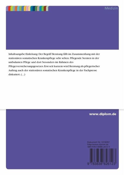 Der Begriff Beratung fällt im Zusammenhang mit der stationären somatischen Krankenpflege sehr selten. Pflegende beraten in der ambulanten Pflege und dort besonders im Rahmen des Pflegerversicherungsgesetzes. Erst seit kurzem wird Beratung als pflegerischer Auftrag auch der stationären somatischen Krankenpflege in der Fachpresse diskutiert.