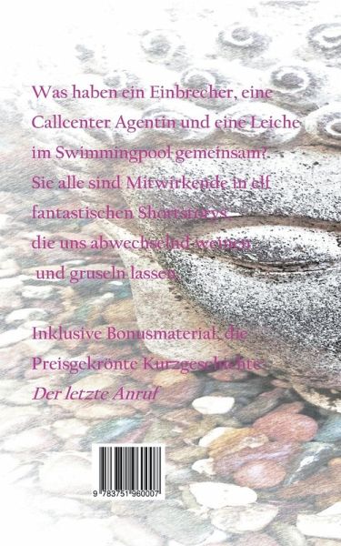 Was haben ein Einbrecher, eine Callcenter Agentin und eine Leiche im Swimmingpool gemeinsam? Sie alle sind Mitwirkende in elf fantastischen Shortstorys, die uns abwechselnd weinen und gruseln lassen. Inklusive Bonusmaterial; die preisgekrönte Kurzgeschichte: Der letzte Anruf