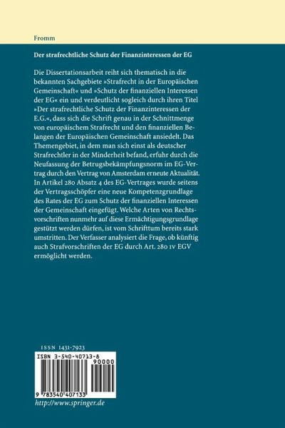 1. Kapitel: Einleitung.- A. Einführung in die Problematik.- B. Eingrenzung des Untersuchungsgegenstandes und Festlegung des Ganges der Untersuchung.- 2. Kapitel: Überblick über den aktuellen Meinungsstand der Gemeinschaftsorgane.- A. Das Europäische Parlament.- B. Der Europäische Rechnungshof.- C. Die Kommission.- D. Der Rat.- E. Ergebnis.- 3. Kapitel: Die Wortlautauslegung des Art. 280 IV EG.- A. Die Interpretation des Art. 280 IV Satz I.- B. Die Frage der Einschränkung einer Befugnis für gemeinschaftliches bereichsspezifisches echtes Kriminalstrafrecht durch die Unberührtheitsklausel in Art. 280 IV 2 EG.- C. Gesamtergebnis der wörtlichen Auslegung.- 4. Kapitel: Die systematische Auslegung.- A. Die Verwendung des Terminus "MaBnahmen" in den einzelnen Absätzen des Art. 280.- B. Der Vergleich der Unberührtheitsklausel des Art. 280 IV 2 EG mit den in sekundärrechtlichen Vorschriften mit Sanktionscharakter verwandten Unberührtheitsklauseln.- C. Das Verbot der Verweisungstechnik durch Art. 280 IV 2 EG.- D. Der mögliche konkludente Ausschluss einer supranationalen Strafrechtsetzungskompetenz durch Art. 83 II lit. a, 229 EG sowie durch die speziellen Sanktionsvorschriften des EAGV und EGKSV.- E. Die Frage des Vorbehalts des Kriminalstrafrechts der EG zu Gunsten primärrechtlicher Bestimmungen.- F. Die "Bestimmungen über die polizeiliche und justitielle Zusammenarbeit in Strafsachen" im Rahmen des VI. Titels des Vertrages über die Europäische Union als kompetenzbegrenzendes Argument einer partielien Strafrechtskompetenz für Organe der EG.- G. Der Grundsatz "nullum crimen sine lege" als kompetenzbegrenzendes Argument.- H. Die Foigen des Fehlens eines europäischen Strafgerichtshofes sowie tauglicher Einrichtungen zur Vollstreckung verhängterFreiheitsstrafen für die Existenz einer EG-Strafrechtssetzungskompetenz.- J. Das "Souveränitätsargument" der Mitgliedstaaten.- K. Das Subsidiaritätsprinzip als Kompetenzausübungsschranke.- L. Die einschränkende Interpretation von Ermächtigungsgrundlagen unter dem Aspekt des allgemeinen Rechtsgrundsatzes "nulla poena sine lege parlamentaria".- M. Ergebnisse zur systematischen Auslegung.- 5. Kapitel: Überprüfung der Ergebnisse durch historische und teleologische Erwägungen.- A. Die Auswertung der Materialien zum Artikel 280 EG.- B. Die Vorgeschichte des Vertrages von Amsterdam: Der strafrechtliche Schutz der finanziellen Interessen der EG vor Betrügereien durch Art. 209a EGV.- C. Die teleologische Auslegung.- III. Ergebnis.- IV. Das Erfordernis der Korrektur der fehlerhaft formulierten Unberührtheitsklausel.- Endergebnisse und Ausblick.