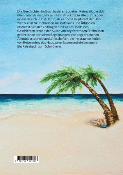 Die Geschichten im Buch basieren aus einer Reisezeit, die sich über mehr als vier Jahrzehnte erstreckt Vom alte Burma oder einem Besuch in Ost Berlin, als es noch Hauptstadt der DDR war, bis hin zu Erlebnissen aus Botswana und Äthiopien erstreckt sich der Zeitbogen des Buches. In kleinen Geschichten erzählt der Autor von begeisternden Erlebnissen, gefährlichen tierischen Begegnungen, von abgebrochenen Abenteuertouren, von Landschaften, die ihn staunen ließen, von Reisen ohne das Haus zu verlassen und einigem mehr.Ein Reisebuch zum Schmökern.