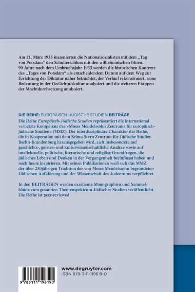 Am 21. März 1933 inszenierten die Nationalsozialisten mit dem "Tag von Potsdam" publikumswirksam den Schulterschluss der neuen Machthaber mit den alten, wilhelminischen Eliten aus Adel, Bürgertum, Kirche und Militär. 80 Jahre nach dem Umbruchsjahr 1933 werden im vorliegenden Band die historischen Kontexte des "Tages von Potsdam " als einer entscheidenden Wegmarke bei der Errichtung der nationalsozialistischen Diktatur noch einmal näher betrachtet. In neun Beiträgen von renommierten Wissenschaftlern wird zunächst der Verlauf des "Tages von Potsdam" rekonstruiert, seine Bedeutung in der Gedächtniskultur analysiert und die weiteren Etappen und Faktoren der nationalsozialistischen Machdurchsetzung in den Blick genommen.