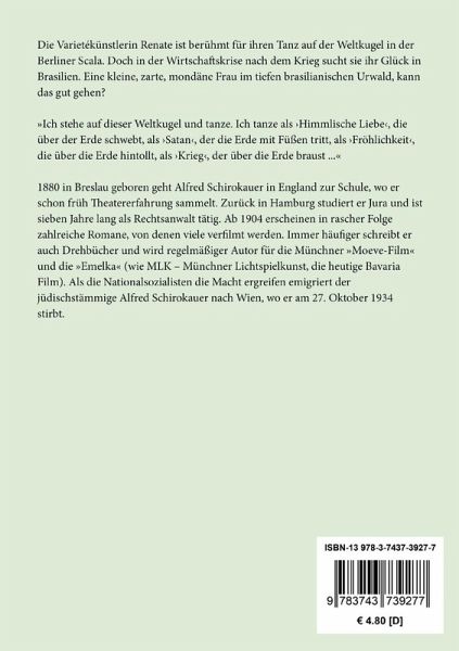 Alfred Schirokauer: Der Tanz auf der Weltkugel Die Varietékünstlerin Renate ist berühmt für ihren Tanz auf der Weltkugel in der Berliner Scala. Doch in der Wirtschaftskrise nach dem Krieg sucht sie ihr Glück in Brasilien. Eine kleine, zarte, mondäne Frau im tiefen brasilianischen Urwald, kann das gut gehen? »Ich stehe auf dieser Weltkugel und tanze. Ich tanze als ¿Himmlische Liebe¿, die über der Erde schwebt, als ¿Satan¿, der die Erde mit Füßen tritt, als ¿Fröhlichkeit¿, die über die Erde hintollt, als ¿Krieg¿, der über die Erde braust ...« Erstdruck: Wien, Berlin, Leipzig, Spiegel-Verlag, 1927. Neuausgabe. Herausgegeben von Karl-Maria Guth. Berlin 2021. Der Text dieser Ausgabe wurde behutsam an die neue deutsche Rechtschreibung angepasst. Umschlaggestaltung von Thomas Schultz-Overhage. Gesetzt aus der Minion Pro, 11 pt. Henricus - Edition Deutsche Klassik GmbH Über den Autor: 1880 in Breslau geboren geht Alfred Schirokauer in England zur Schule, wo er schon früh Theatererfahrung sammelt. Zurück in Hamburg studiert er Jura und ist sieben Jahre lang als Rechtsanwalt tätig. Ab 1904 erscheinen in rascher Folge zahlreiche Romane, von denen viele verfilmt werden. Immer häufiger schreibt er auch Drehbücher und wird regelmäßiger Autor für die Münchner »Moeve-Film« und die »Emelka« (wie MLK ¿ Münchner Lichtspielkunst, die heutige Bavaria Film). Als die Nationalsozialisten die Macht ergreifen emigriert der jüdischstämmige Alfred Schirokauer nach Wien, wo er am 27. Oktober 1934 stirbt.