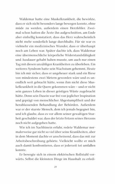 Waldemar ist ein junger Mann im Rollstuhl. Er lebt in einem sozialen Brennpunkt. Er hat mir persönlich gut gefallen. Waldemar kämpft für sein leben, auch wenn andere ihn vielleicht schon längst aufgegeben haben. Es scheint sogar als ob er Asger quasi die Augen öffnet, denn er versteht mehr vom Leben als manch anderer.