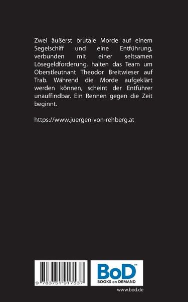 Zwei äußerst brutale Morde auf einem Segelschiff und eine Entführung, verbunden mit einer seltsamen Lösegeldforderung, halten das Team um Oberstleutnant Theodor Breitwieser auf Trab. Während die Morde aufgeklärt werden können, scheint der Entführer unauffindbar. Ein Rennen gegen die Zeit beginnt.https://www.juergen-von-rehberg.at