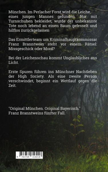 München. Im Perlacher Forst wird die Leiche eines jungen Mannes gefunden. Nur mit Turnschuhen bekleidet, wurde der unbekannte Tote noch lebend an einen Baum gefesselt und hilflos zurückgelassen. Das Ermittlerteam um Kriminalhauptkommissar Franz Branntwein steht vor einem Rätsel: Missgeschick oder Mord? Bei der Leichenschau kommt Unglaubliches ans Licht. Erste Spuren führen ins Münchner Nachtleben der High Society. Als eine zweite Person verschwindet, beginnt ein Wettlauf gegen die Zeit. "Original München. Original Bayerisch." Franz Branntweins fünfter Fall.