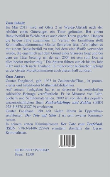 Im Mai 2013 wird auf Gleis 2 in Weida-Altstadt nach der Abfahrt eines Güterzuges ein Toter gefunden. Bei einem Banküberfall in Weida hat es auch einen Toten gegeben. Hängen beide Fälle zusammen? Im Verlauf der Ermittlungen stellt Kriminalhauptkommissar Günter Schreiber fest: "Wir haben es mit einem Banküberfall zu tun, bei dem eine Waffe verwendet wurde, die eigentlich auf dem Grund eines Stausees liegt, und bei dem ein Täter beteiligt ist, der seit 2004 tot sein soll. Das ist alles höchst merkwürdig." Die Spuren führen zurück bis ins Jahr 2002 und auch nach Thailand. In mühevoller Kleinarbeit gelingt es der Geraer Mordkommission auch diesen Fall zu lösen.