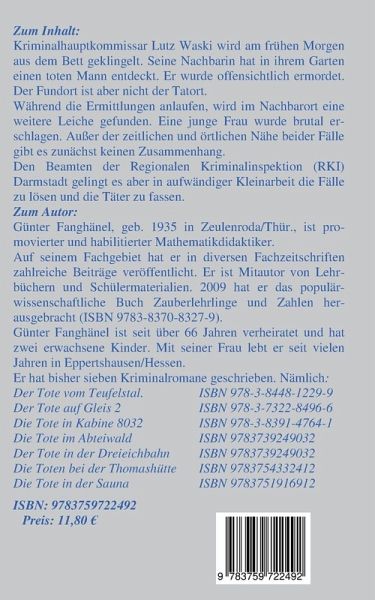 Kriminalhauptkommissar Lutz Waski wird am frühen Morgen aus dem Bett geklingelt. Seine Nachbarin hat in ihrem Garten einen toten Mann entdeckt. Er wurde offensichtlich ermordet. Der Fundort ist aber nicht der Tatort.Während die Ermittlungen anlaufen, wird im Nachbarort eine weitere Leiche gefunden. Eine junge Frau wurde brutal erschlagen. Außer der zeitlichen und örtlichen Nähe beider Fälle gibt es zunächst keinen Zusammenhang.Den Beamten der Regionalen Kriminalinspektion (RKI) Darmstadt gelingt es aber in aufwändiger Kleinarbeit die Fälle zu lösen und die Täter zu fassen.
