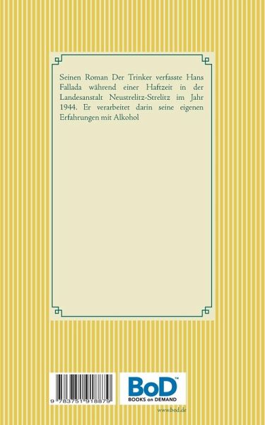Seinen Roman Der Trinker verfasste Hans Fallada während einer Haftzeit in der Landesanstalt Neustrelitz-Strelitz im Jahr 1944. Er verarbeitet darin seine eigenen Erfahrungen mit Alkohol