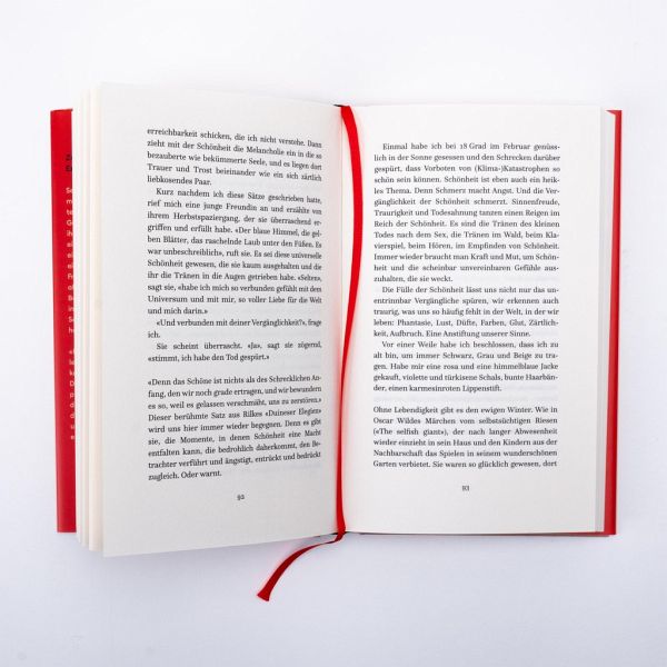 Trost finden. In einer Welt, die so überwältigend, ängstigend, fordernd sein kann. Trost finden im Empfinden von Schönheit, weil das, so Gabriele von Arnim, nicht weniger ist als Selbsterhalt. «Ich brauche Schönheit. Den Trost der Schönheit. Denn wenn ich Schönheit sehe, höre, lese, spüre, dann glaube ich an Möglichkeiten. An Wege, Räume, Purzelbäume.»