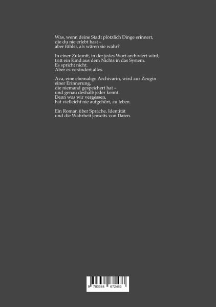 In einer Zukunft, in der alles gespeichert wird, taucht ein Kind auf, das nirgends existiert - und bringt ein Archiv zum Träumen. Erinnerungen, die nie passiert sind, verbreiten sich wie ein Echo. Ava, eine ehemalige Archivarin, erkennt: Was vergessen wurde, lebt weiter - in uns. Ein literarischer Sci-Fi-Roman über Identität, Wahrheit und die Kraft der Erinnerung.