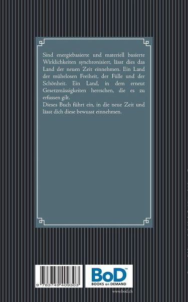 Sind energiebasierte und materiell basierte Wirklichkeiten synchronisiert, lässt dies das Land der neuen Zeit einnehmen. Ein Land der mühelosen Freiheit, der Fülle und der Schönheit. Ein Land, in dem erneut Gesetzmässigkeiten herrschen, die es zu erfassen gilt.Dieses Buch führt ein, in die neue Zeit und lässt dich bewusst in sie eintauchen.