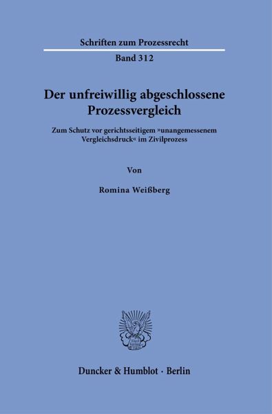 1 GrundlagenKonkretisierung der zu untersuchenden prozessrechtlichen Situation - Betrachtung der Prozesszwecke 2 Der ProzessvergleichVorüberlegungen - Analyse - Zusammenfassende Würdigung 3 Die Ausübung »unangemessenen Vergleichsdruckes«Grundlagen - »Unangemessener Vergleichsdruck« in der Rechtsprechung - Zentrale Thematiken in der Rechtsprechung - Detailanalyse des »unangemessenen Vergleichsdruckes« - Ergebnisse der Analyse 4 Schutz vor »unangemessenem Vergleichsdruck«Ursachen von Vergleichsdruck - Reformvorschläge - Tatsächliches Erfordernis der Schaffung ausreichender Ressourcen - Eigenes Schutzkonzept: Einführung von 278 Abs. 1 Satz 2 ZPO