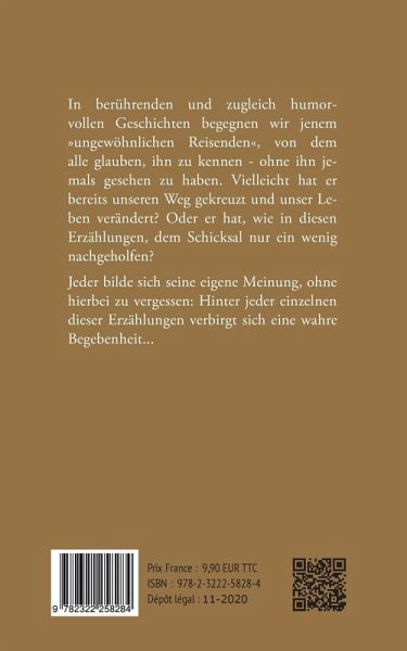 In berührenden und zugleich humorvollen Geschichten begegnen wir jenem "ungewöhnlichen Reisenden", von dem alle glauben, ihn zu kennen - ohne ihn jemals gesehen zu haben. Vielleicht hat er bereits unseren Weg gekreuzt und unser Leben verändert? Oder er hat, wie in diesen Erzählungen, dem Schicksal nur ein wenig nachgeholfen? Jeder bilde sich seine eigene Meinung, ohne hierbei zu vergessen: Hinter jeder einzelnen dieser Erzählungen verbirgt sich eine wahre Begebenheit ...
