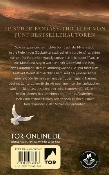 Wie ein gigantischer Trichter bohrt sich die Minenstadt in die Tiefe, in der Glücksritter nach geheimnisvollen Artefakten suchen. Der Fund einer grausig entstellten Leiche, der Pflanzen aus Mund und Augen wachsen, ruft Gunter auf den Plan, den Hauptmann der Schlammringwache. Die Spur führt zum Gastwirt Woulf, dem Aschling Rami und der jungen Diebin namens Kröte. Gemeinsam mit der Todesmagierin Nasiima beginnt Gunter zu ermitteln. Als noch mehr Leichen auftauchen, wird ihm klar, dass ausgerechnet seine Hauptverdächtigen ihm helfen können, das Geheimnis der Toten aufzudecken. Doch kann er ihnen trauen, oder ziehen sie ihn nur noch tiefer hinunter in den Schlamm der Grube?