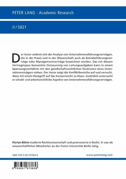 Der Autor widmet sich der Analyse von Unternehmensführungsverträgen, die in der Praxis und in der Wissenschaft auch als Betriebsführungsverträge oder Managementverträge bezeichnet werden. Das mit diesem Vertragstypus bezweckte Outsourcing von Leitungsaufgaben kann in einem Spannungsverhältnis mit den gesellschaftsrechtlichen Strukturen eines Unternehmensträgers stehen. Der Autor zeigt die Konfliktbereiche auf und versucht, diese mit einem Rückgriff auf das Konzernrecht zu lösen. Zusätzlich untersucht er schuld- und arbeitsrechtliche Aspekte von Unternehmensführungsverträgen.