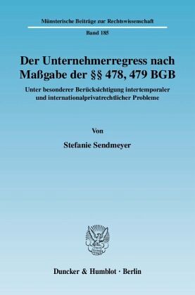 Gegenstand der Arbeit sind die §§ 478, 479 BGB, die Art. 4 der Verbrauchsgüterkaufrichtlinie umsetzen und innerhalb der unternehmerischen Lieferkette einen Rückgriff hinsichtlich der gegenüber einem Verbraucher entstandenen Gewährleistungskosten statuieren. Stefanie Sendmeyer untersucht nicht nur, wie der Unternehmerregress im Einzelnen ausgestaltet ist und an welche Voraussetzungen er in materiellrechtlicher Hinsicht geknüpft ist, sondern auch, wie die Normen in intertemporaler Hinsicht zu bewerten sind, wie sie sich zum UN-Kaufrecht verhalten und wann sie auf internationale Sachverhalte angewandt werden können.