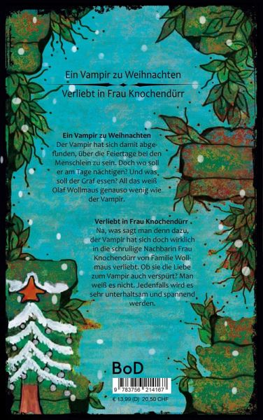 1. Der Vampir hat sich damit abgefunden, über die Feiertage bei den Menschlein zu sein. Doch wo soll er am Tage nächtigen? Und was soll der Graf essen? All das weiß Olaf Wollmaus genauso wenig wie der Vampir. 2. Na, was sagt man denn dazu, der Vampir hat sich doch wirklich in die schrullige Nachbarin Frau Knochendürr von Familie Wollmaus verliebt. Ob sie die Liebe zu Vampir auch verspürt? Man weiß es nicht. Jedenfalls wird es sehr unterhaltsam und spannend werden.