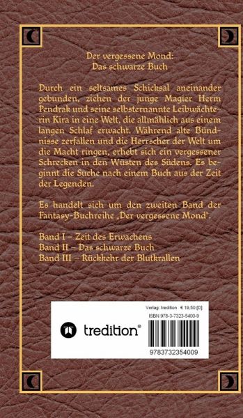"Der vergessene Mond - Das schwarze Buch" hat als Fortsetzung der spektakulären Fantasy-Saga um den vergessenen Mond das Zeug zum Suchtcharakter. Der Kampf von Gut und Böse, magische Welten und Fabelwesen, aber auch die Liebe kommen in diesem wunderbaren Fantasyschmöker ebenfalls nicht zu kurz. Die Suche nach einem geheimnisvollen schwarzen Buch, Intrigen am Hof, Geheimbünde und Magier entführen den Leser erneut in die Welt von Herm Pendrak und Kira. Eine spektakuläre Fortsetzung der Fantasy-Saga.