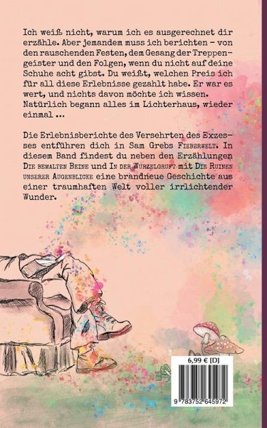 Ich weiß nicht, warum ich es ausgerechnet dir erzähle. Aber jemandem muss ich berichten - von den rauschenden Festen, dem Gesang der Treppengeister und den Folgen, wenn du nicht auf deine Schuhe acht gibst. Du weißt, welchen Preis ich für all diese Erlebnisse gezahlt habe. Er war es wert, und nichts davon möchte ich missen. Natürlich begann alles im Lichterhaus, wieder einmal ...Die Erlebnisberichte des Versehrten des Exzesses entführen dich in Sam Grebs Fieberwelt. In diesem Band findest du neben den Erzählungen "Die bemalten Beine" und "In der Wurzelgruft" mit "Die Ruinen unserer Augenblicke" eine brandneue Geschichte aus einer traumhaften Welt voller irrlichtender Wunder.