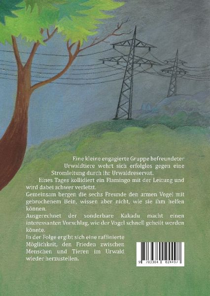 Eine kleine engagierte Gruppe befreundeter Urwaldtiere wehrt sich erfolglos gegen eine Stromleitung durch ihr Urwaldreservat.Eines Tages kollidiert ein Flamingo mit der Leitung und wird dabei schwer verletzt.Gemeinsam bergen die sechs Freunde den armen Vogel mit gebrochenem Bein, wissen aber nicht, wie sie ihm helfen können. Ausgerechnet der sonderbare Kakadu macht einen interessanten Vorschlag, wie der Vogel schnell geheilt werden könnte. In der Folge ergibt sich eine raffinierte Möglichkeit, den Frieden zwischen Menschen und Tieren im Urwald wieder herzustellen.