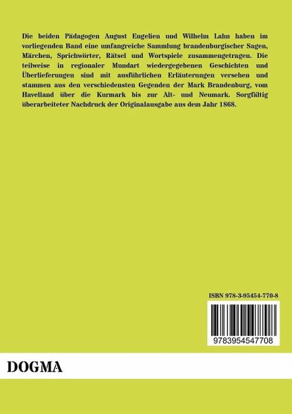 Die beiden Pädagogen August Engelien und Wilhelm Lahn haben im vorliegenden Band eine umfangreiche Sammlung brandenburgischer Sagen, Märchen, Sprichwörter, Rätsel und Wortspiele zusammengetragen. Die teilweise in regionaler Mundart wiedergegebenen Geschichten und Überlieferungen sind mit ausführlichen Erläuterungen versehen und stammen aus den verschiedensten Gegenden der Mark Brandenburg, vom Havelland über die Kurmark bis zur Alt- und Neumark. Sorgfältig überarbeiteter Nachdruck der Originalausgabe aus dem Jahr 1868.