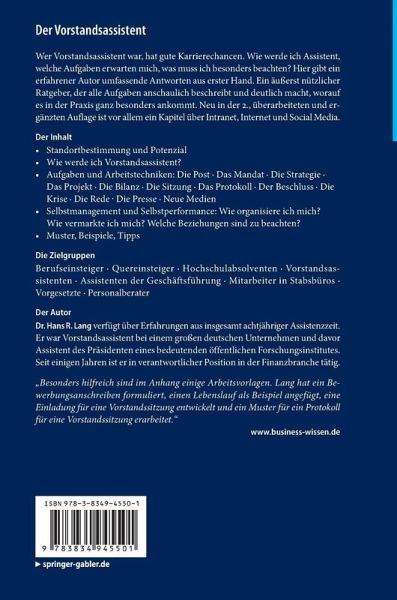 Wer Vorstandsassistent war, hat gute Karrierechancen. Wie werde ich Assistent, welche Aufgaben erwarten mich, was muss ich besonders beachten? Hier gibt ein erfahrener Autor umfassende Antworten aus erster Hand. Ein äußerst nützlicher Ratgeber, der alle Aufgaben anschaulich beschreibt und deutlich macht, worauf es in der Praxis ganz besonders ankommt. Neu in der 2., überarbeiteten und ergänzten Auflage ist vor allem ein Kapitel über Intranet, Internet und Social Media.