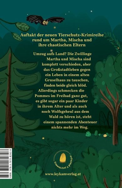 Umzug auf Land? Oh no!Ein Umzug ins öde Kaff auf dem Land entwickelt sich zum Tierschutzkrimi rund um die mutigen Zwillinge Martha & Mischa und ihre schrulligen Eltern.Die Zwillinge Martha und Mischa sind komplett verschieden. Aber als ihre Eltern ihnen ohne Vorwarnung mitteilen, dass sie das Großstadtleben gegen ein altes Gruselhaus in irgendeinem öden Kaff am Ende der Welt eintauschen werden, sind sie ausnahmsweise einer Meinung: Das geht gar nicht. Doch so sehr sich die beiden vorgenommen haben, das Ganze richtig blöd zu finden, das Leben auf dem Land ist gar nicht mal so schlecht: Die Pommes im Schwimmbad schmecken eigentlich ganz gut und es gibt sogar ein paar Kinder in ihrem Alter. Neben Schauergeschichten, Waldexpeditionen und Lagerfeuer haben die Zwillinge bald kaum noch Zeit, ihrem alten Leben nachzutrauern. Und als aus dem Wald auch noch ein unheimliches Wolfsgeheul dringt, entwickeln sich die Sommerferien zu einem spannenden Tierschutzkrimi.
