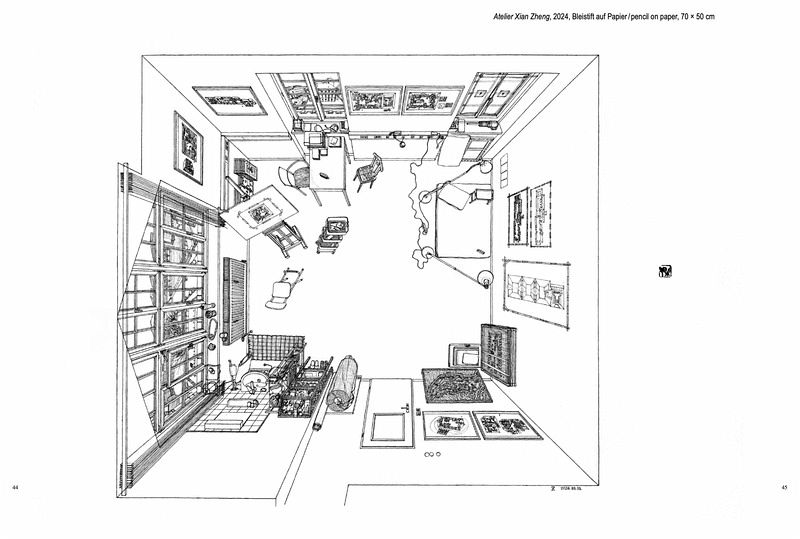 Für ihr jüngstes Projekt und erste Monografie Der wandernde Blick. 2017-2024 beschäftigt sich Xian Zheng einer präzisen und detailgetreuen Darstellung von Interieurs bildender Künstler_innen. Mit einem Essay von Gabriele Spindler.
