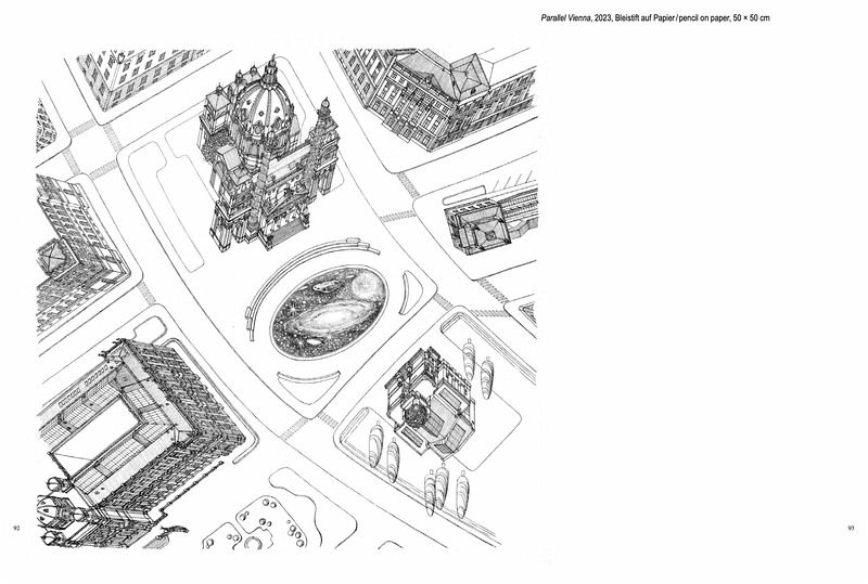 The artist Xian Zheng (b. Hunan, China; lives and works in Linz) has devoted herself entirely to the medium of drawing. A landscape and interior architect by training, she has taught at the University of Art and Design Linz since 2017. Her graphic art, often in large formats, is dedicated to a meticulous recording of interior and exterior spaces. She is particularly interested in architectonic ensembles and spatial structures, which she studies and elaborates with exacting attention to detail. The defining feature of her creative approach is multiperspectivalism: to capture every aspect and facet of a space, she assembles views from different angles that nonetheless yield a homogeneous overall impression.
