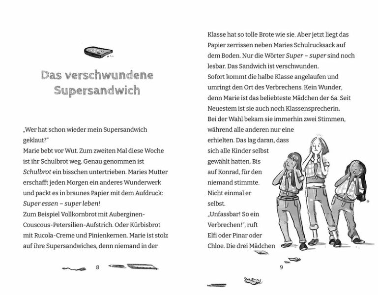 In der 6a ist ein Verbrechen geschehen: Marie, dem beliebtesten Mädchen der Klasse, wurden die Pausenbrote gestohlen. Schnell scheint klar, dass nur einer als Täter in Betracht kommt: Konrad. Der ist neu in der Klasse und hat noch keine Freund_innen gefunden. Statt auf dem Schulhof verbringt er die Pausen im Klassenraum. Wer soll es denn sonst gewesen sein? Konrad jedoch ist sich keiner Schuld bewusst. Und als die Kinder auf die Idee kommen, in einem Gerichtsverfahren über Schuld oder Unschuld zu verhandeln, kommt heraus: Es ist alles ganz anders, als sie dachten ...