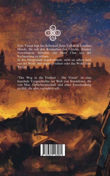 Eine Vision legt das Schicksal ihres Volkes in Lorenas Hände. Sie soll den Kronerben des Feindes, Alastor Verrátheron, heiraten, um ihren Clan aus der Verbannung zu erlösen.In der Hauptstadt angekommen, steht sie schon bald vor der Wahl: ihre eigene Freiheit oder das Wohl ihres Volkes."Der Weg in die Freiheit - Die Vision" ist eine fesselnde Vorgeschichte zur Welt von Sturmfeuer, die von Mut, Opferbereitschaft und einer Entscheidung erzählt, die alles verändern soll.