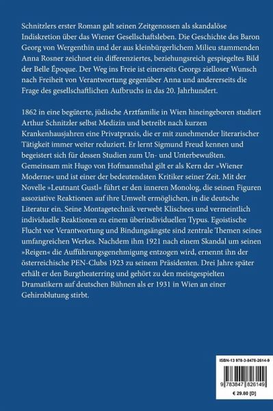 Arthur Schnitzler: Der Weg ins Freie. Roman Lesefreundlicher Großdruck in 16-pt-Schrift Schnitzlers erster Roman galt seinen Zeitgenossen als skandalöse Indiskretion über das Wiener Gesellschaftsleben. Die Geschichte des Baron Georg von Wergenthin und der aus kleinbürgerlichem Milieu stammenden Anna Rosner zeichnet ein differenziertes, beziehungsreich gespiegeltes Bild der Belle Époque. Der Weg ins Freie ist einerseits Georgs zielloser Wunsch nach Freiheit von Verantwortung gegenüber Anna und andererseits die Frage des gesellschaftlichen Aufbruchs in das 20. Jahrhundert. Großformat, 210 x 297 mm Berliner Ausgabe, 2019 Durchgesehener Neusatz mit einer Biographie des Autors bearbeitet und eingerichtet von Theodor Borken Begonnen 1902 erscheint der Roman erstmalig 1908 in: Die Neue Rundschau, XIX. Jahrgang, 1. bis 6. Heft, Januar-Juni 1908. Textgrundlage ist die Ausgabe: Arthur Schnitzler: Gesammelte Werke. Die erzählenden Schriften, 2 Bände, Frankfurt a.M.: S. Fischer Verlag, 1961. Umschlaggestaltung von Thomas Schultz-Overhage unter Verwendung des Bildes: Gustav Klimt, Musik I (Ausschnitt), 1895. Gesetzt aus der Minion Pro, 16 pt. Über den Autor: 1862 in eine begüterte, jüdische Arztfamilie in Wien hineingeboren studiert Arthur Schnitzler selbst Medizin und betreibt nach kurzen Krankenhausjahren eine Privatpraxis, die er mit zunehmender literarischer Tätigkeit immer weiter reduziert. Er lernt Sigmund Freud kennen und begeistert sich für dessen Studien zum Un- und Unterbewußten. Gemeinsam mit Hugo von Hofmannsthal gilt er als Kern der »Wiener Moderne« und ist einer der bedeutendsten Kritiker seiner Zeit. Mit der Novelle »Leutnant Gustl« führt er den inneren Monolog, die seinen Figuren assoziative Reaktionen auf ihre Umwelt ermöglichen, in die deutsche Literatur ein. Seine Montagetechnik verwebt Klischees und vermeintlich individuelle Reaktionen zu einem überindividuellen Typus. Egoistische Flucht vor Verantwortung und Bindungsängste sind zentrale Themen seines umfangreichen Werkes. Nachdem ihm 1921 nach einem Skandal um seinen »Reigen« die Aufführungsgenehmigung entzogen wird, ernennt ihn der österreichische PEN-Clubs 1923 zu seinem Präsidenten. Drei Jahre später erhält er den Burgtheaterring und gehört zu den meistgespielten Dramatikern auf deutschen Bühnen als er 1931 in Wien an einer Gehirnblutung stirbt.