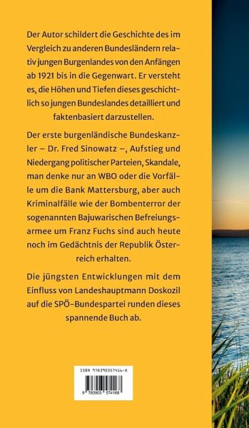 Der Autor schildert die Geschichte des im Vergleich zu anderen Bundesländern relativ jungen Burgenlandes von den Anfängen ab 1921 bis in die Gegenwart. Er versteht es, die Höhen und Tiefen dieses geschichtlich so jungen Bundeslandes detailliert und faktenbasiert darzustellen.Der erste burgenländische Bundeskanzler - Dr. Fred Sinowatz -, Aufstieg und Niedergang politischer Parteien, Skandale, man denke nur an WBO oder die Vorfälle um die Bank Mattersburg, aber auch Kriminalfälle wie der Bombenterror der sogenannten Bajuwarischen Befreiungsarmee um Franz Fuchs sind auch heute noch im Gedächtnis der Republik Österreich erhalten.Die jüngsten Entwicklungen mit dem Einfluss von Landeshauptmann Doskozil auf die SPÖ-Bundespartei runden dieses spannende Buch ab.