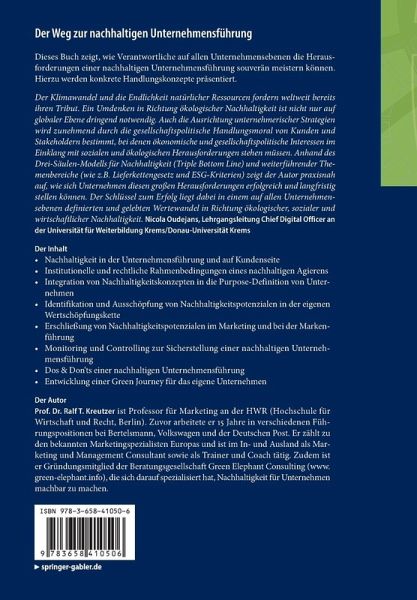 Der Klimawandel und die Endlichkeit natürlicher Ressourcen fordern weltweit bereits ihren Tribut. Ein Umdenken in Richtung ökologischer Nachhaltigkeit ist nicht nur auf globaler Ebene dringend notwendig. Auch die Ausrichtung unternehmerischer Strategien wird zunehmend durch die gesellschaftspolitische Handlungsmoral von Kunden und Stakeholdern bestimmt, bei denen ökonomische und gesellschaftspolitische Interessen im Einklang mit sozialen und ökologischen Herausforderungen stehen müssen. Anhand des Drei-Säulen-Modells für Nachhaltigkeit (Triple Bottom Line) und weiterführender Themenbereiche (wie z.B. Lieferkettengesetz und ESG-Kriterien) zeigt der Autor praxisnah auf, wie sich Unternehmen diesen großen Herausforderungen erfolgreich und langfristig stellen können. Der Schlüssel zum Erfolg liegt dabei in einem auf allen Unternehmensebenen definierten und gelebten Wertewandel in Richtung ökologischer, sozialer und wirtschaftlicher Nachhaltigkeit. Nicola Oudejans, Lehrgangsleitung Chief Digital Officer an der Universität für Weiterbildung Krems/Donau-Universität Krems