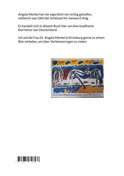 Angela Merkel hat mir eigentlich nie richtig geholfen, vielleicht war DAS der Schlüssel für meinen Erfolg.Es handelt sich in diesem Buch hier um eine knallharte Korrektur von Deutschland.Ich würde Frau Dr. Angela Merkel in Kronburg gerne zu einem Bier einladen, um über Verbesserungen zu reden.
