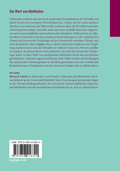 Giftmorde zeichnen sich durch die praktische Unsichtbarkeit der Tatwaffe und damit durch eine besondere Heimlichkeit aus. Anders als bei vielen anderen Morden ist so nicht nur die Täterschaft, sondern schon die Tat selbst besonders schwierig festzustellen. Gerichte sind und waren deshalb besonders angewiesen auf wissenschaftliche und medizinische Gutachten. Während des 19. Jahrhunderts entwickelt sich dazu analog zu Entwicklungen in der analytischen Chemie die forensische Toxikologie an der Schnittstelle zwischen Chemie und Gerichtsmedizin. Ihre Aufgabe war es, durch chemische Analysen eine Vergiftung nachzuweisen und die Tatwaffe im wahrsten Sinne des Wortes sichtbar zu machen. In diesem Buch wird analysiert, wie sich die forensische Toxikologie dabei in ihrer Wahl von analytischen Methoden durch die spezifischen gerichtlichen Anforderungen beeinflussen ließ. Dabei werden Entwicklungen der analytischen Chemie genauso in den Blick genommen wie sich verändernde Rechtskontexte in Frankreich und den deutschen Staaten des 19. Jahrhunderts.