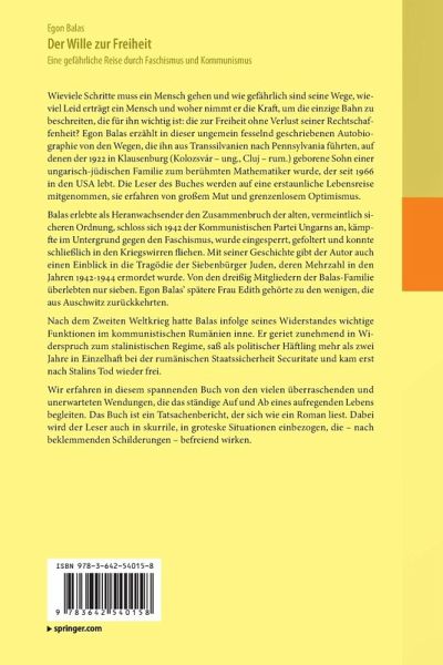 Wieviele Schritte muss ein Mensch gehen und wie gefährlich sind seine Wege, wieviel Leid erträgt ein Mensch und woher nimmt er die Kraft, um die einzige Bahn zu beschreiten, die für ihn wichtig ist: die zur Freiheit ohne Verlust seiner Rechtschaffenheit? Egon Balas erzählt in dieser ungemein fesselnd geschriebenen Autobiographie von den Wegen, die ihn aus Transsilvanien nach Pennsylvania führten, auf denen der 1922 in Klausenburg (Kolozsvár - ung., Cluj - rum.) geborene Sohn einer ungarisch-jüdischen Familie zum berühmten Mathematiker wurde, der seit 1966 in den USA lebt. Die Leser des Buches werden auf eine erstaunliche Lebensreise mitgenommen, sie erfahren von großem Mut und grenzenlosem Optimismus.