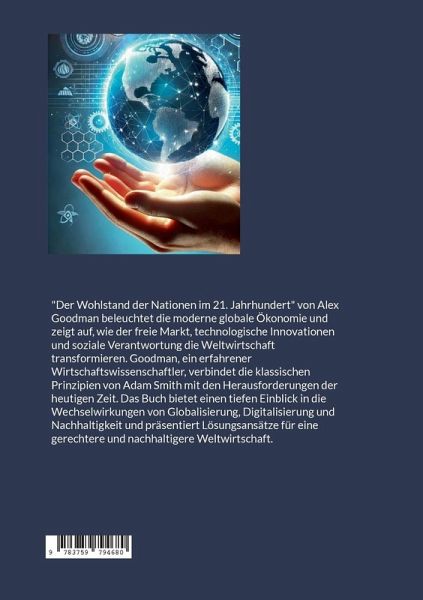 "Der Wohlstand der Nationen im 21. Jahrhundert" von Alex Goodman beleuchtet die moderne globale Ökonomie und zeigt auf, wie der freie Markt, technologische Innovationen und soziale Verantwortung die Weltwirtschaft transformieren. Goodman, ein erfahrener Wirtschaftswissenschaftler, verbindet die klassischen Prinzipien von Adam Smith mit den Herausforderungen der heutigen Zeit. Das Buch bietet einen tiefen Einblick in die Wechselwirkungen von Globalisierung, Digitalisierung und Nachhaltigkeit und präsentiert Lösungsansätze für eine gerechtere und nachhaltigere Weltwirtschaft.