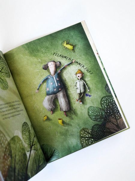 Die Geschichte ist kindgemäß, lebendig, klar und bildhaft formuliert. Jedem kurzen Satz ist anzumerken, dass er wohlüberlegt ist. Bestimmte Wörter sind dabei größer gedruckt, um sie hervorzuheben. Meist befinden sich nicht mehr als zwei Sätze auf einer Seite. Das Besondere am Buch sind die wunderbar gestalteten, großflächigen, bunten und ausdrucksstarken Bilder, die die Wirkung der Wörter sehr deutlich zeigen. Die detaillierten, liebevollen Illustrationen sind ein echtes Highlight. Auch den doppeldeutigen Titel der Geschichte finde ich sehr gelungen und passend. Das Buch richtet sich an Kinder ab fünf Jahren.