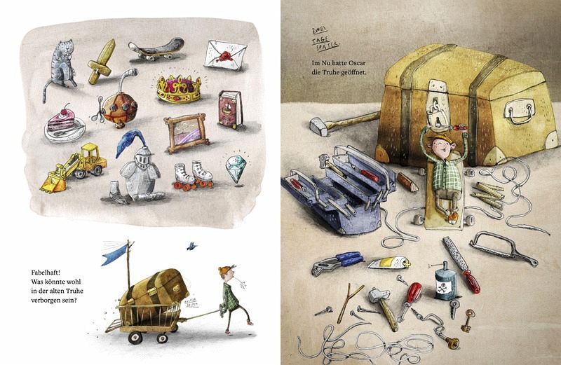 Eines Tages entdeckt Oscar beim Löcherbuddeln eine prächtige, alte Truhe. Anders als erwartet befinden sich darin allerdings nur Wörter. Doch als Oscar eines davon enttäuscht wegwirft, erkennt er, dass das Wort eine magische Wirkung hat. Nun möchte Oscar natürlich auch noch den Zauber der anderen Wörter erkunden….