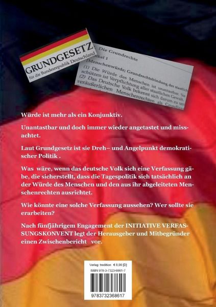2011 gründete sich die INITIATIVE VERFASSUNGSKONVENT, um einen zivilgesellschaftlichen Verfassungskonvent einzuleiten. Dieser soll dem deutschen Volk einen Verfassungsentwurf erarbeiten, der nach Art. 146 GG das 1949 beschlossene Provisorium "Grundgesetz" ablöst.Dieser Entwurf soll sich ausrichten an den Leitwerten Solidarität, Gemeinwohl und der im Artikel 1 GG definierten Menschenwürde.
