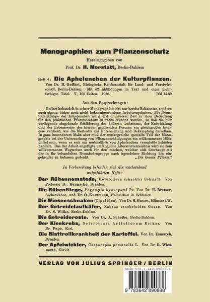 I. Wirtschaftliche Bedeutung.- II. Geschichtliches.- III. Name und Synonyme des Erregers; systematische Stellung.- IV. Geographische Verbreitung des Erregers und des schädlichen Auftretens. Wirtspflanzen.- V. Krankheitsbild.- a) Krankheitssymptome der Kartoffel.- b) Stengel- und Wurzelfäule.- c) Fäden von fleischigen Wurzeln.- d) Blatt- und Fruchtbeschädigungen..- VI. Morphologie und Physiologie von R. solani K..- a) Die Entwicklungsformen.- b) Entwicklung, Kern- und Sexualitätsverhältnisse.- c) Äußere Entwicklungsfaktoren.- d) Innere Entwicklungsfaktoren.- e) Erhaltung und Verbreitung.- VII. Beziehungen zwischen Parasit und Wirtspflanze.- a) Das Eindringen des Parasiten.- b) Das Wachstum in der Nährpflanze.- c) Pathologische Histologie.- d) Resistenz, Immunität und Virulenz.- e) Einfluß äußerer Faktoren auf Auftreten und Verlauf der Krankheit.- VIII. Bekämpfung.- a) Kulturmaßnahmen.- b) Technische Bekämpfungsmaßnahmen.- c) Organisation der Bekämpfung.